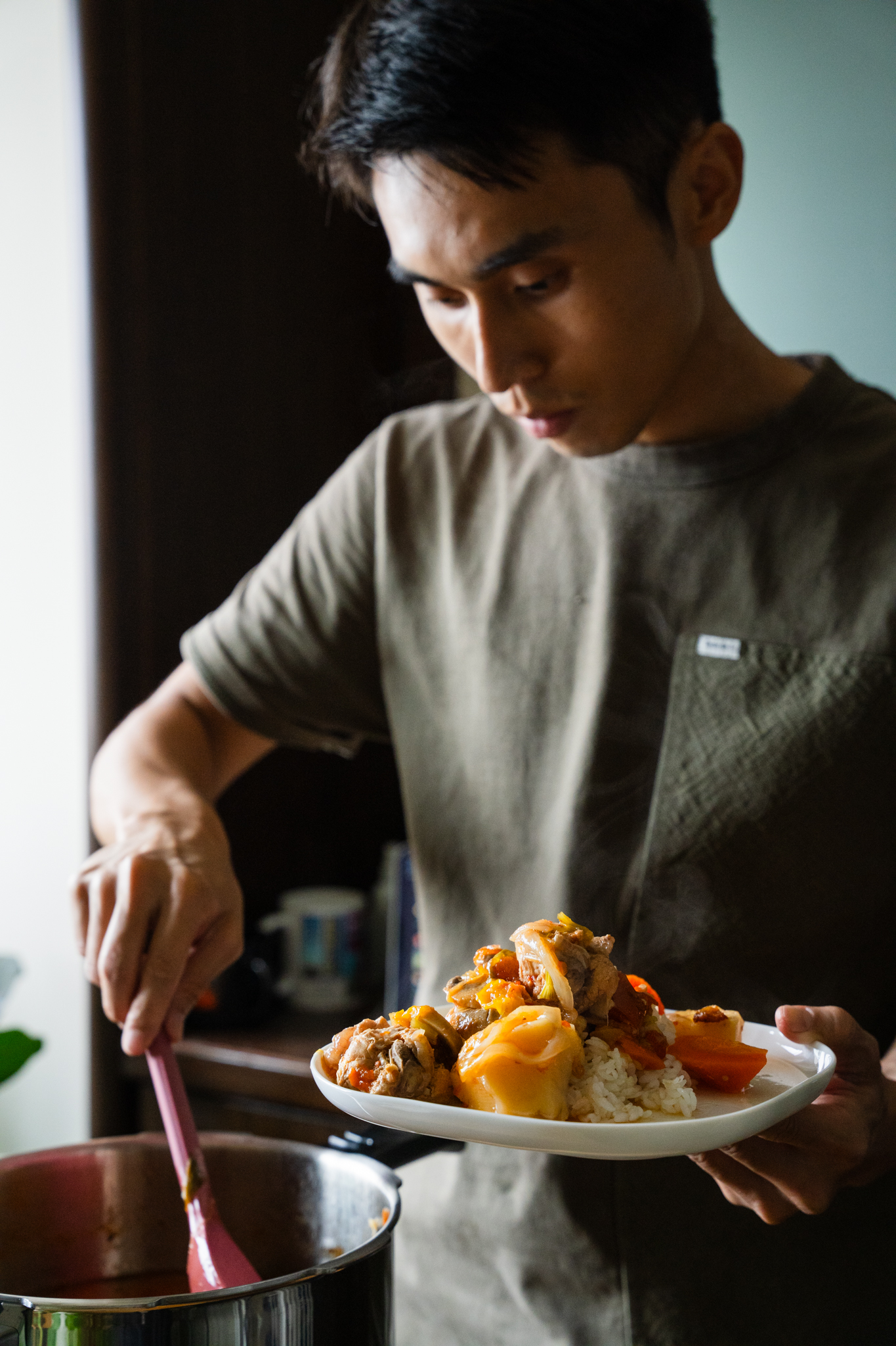 今天這鍋大概用5-10分鐘第一階段中大火加壓後,再轉小火燉10分鐘就可完成,水分上加得也會比一般鍋子少不用淹過食材(因為加壓後食材會釋出水分!)
