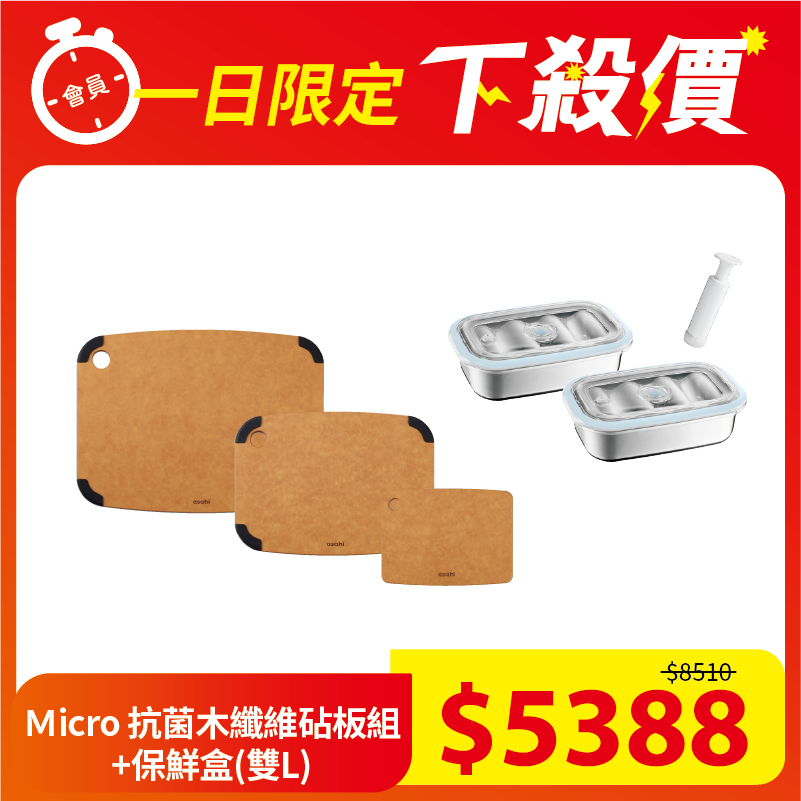 【會員日】Micro 抗菌木纖維砧板組+保鮮盒(雙L)