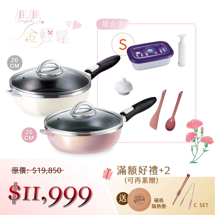 可拆式全能平底鍋(L)奶油白、香檳粉