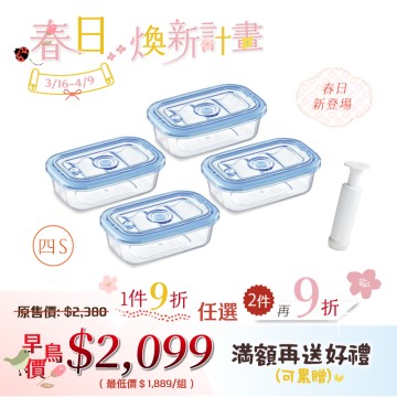【春日煥新】純淨真空保鮮盒(S)四入 + 真空棒
